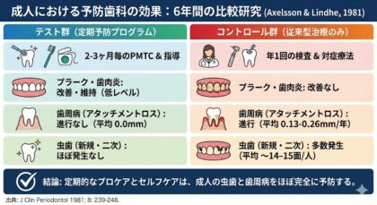 この研究が発表されるまで、多くの人は「大人になれば少しずつ歯がダメになるのは仕方ない」と考えていました。しかし、この結果はそれを真っ向から否定したのです。