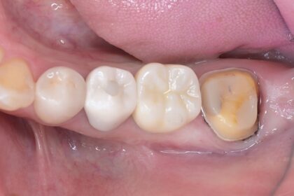 昔治療した歯がしみるとのことで来院されました。被せ物が不適で、刺激があったようです。同じ治療でもどのくらいの精度で治療するのかで予後が変わります。 |